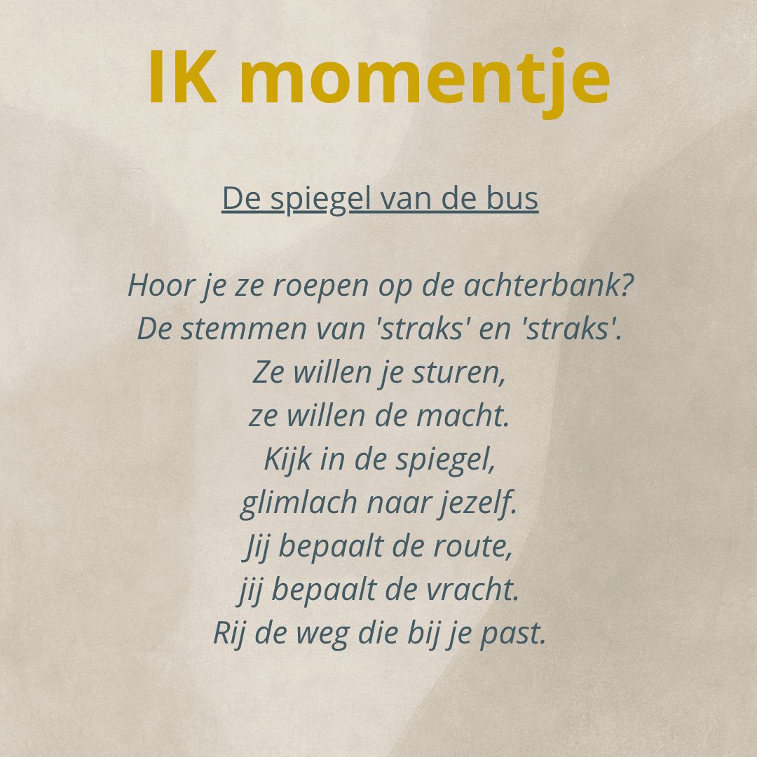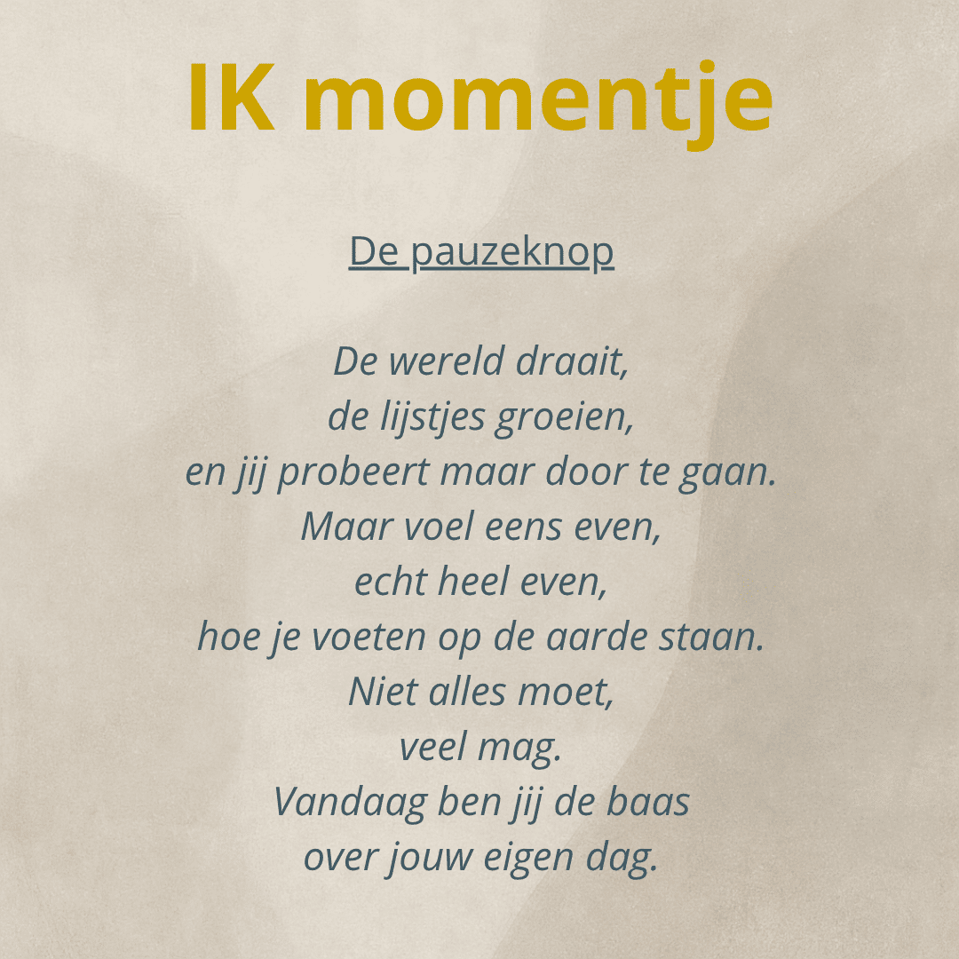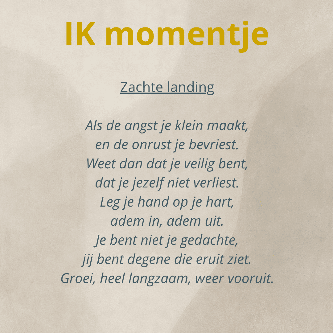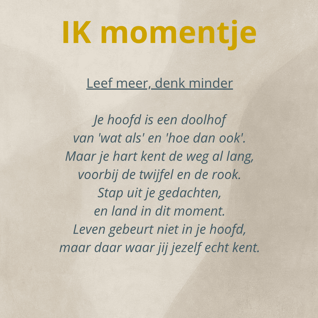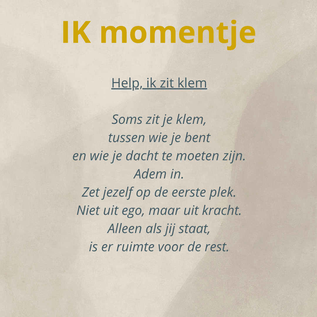 Nog niet klaar voor een gesprek? Begin klein met de Ik-momentjes. Korte reflecties voor wie even wil stilstaan.